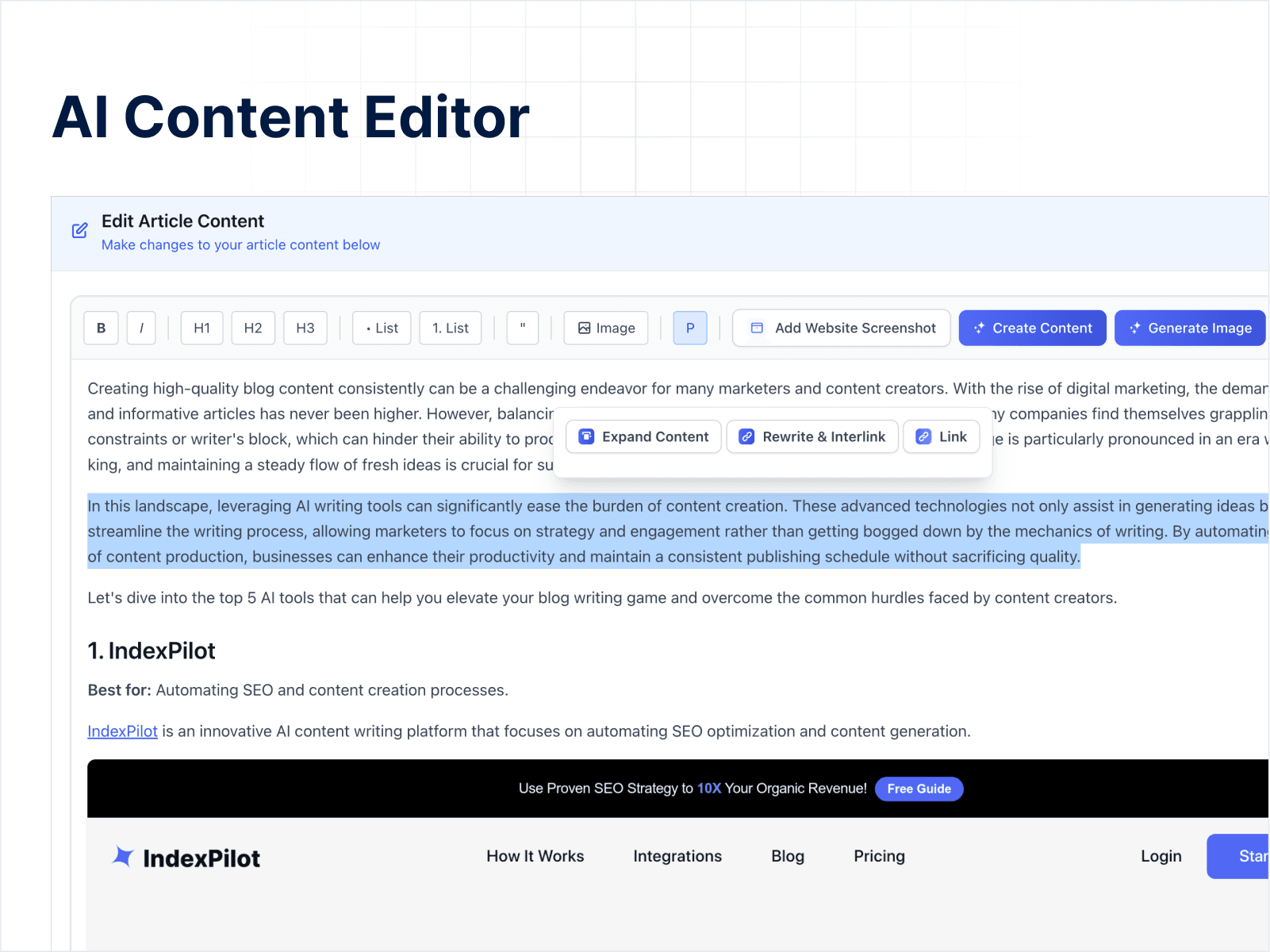 3. Easy Integration: ContentBot integrates with popular marketing tools for a seamless experience.